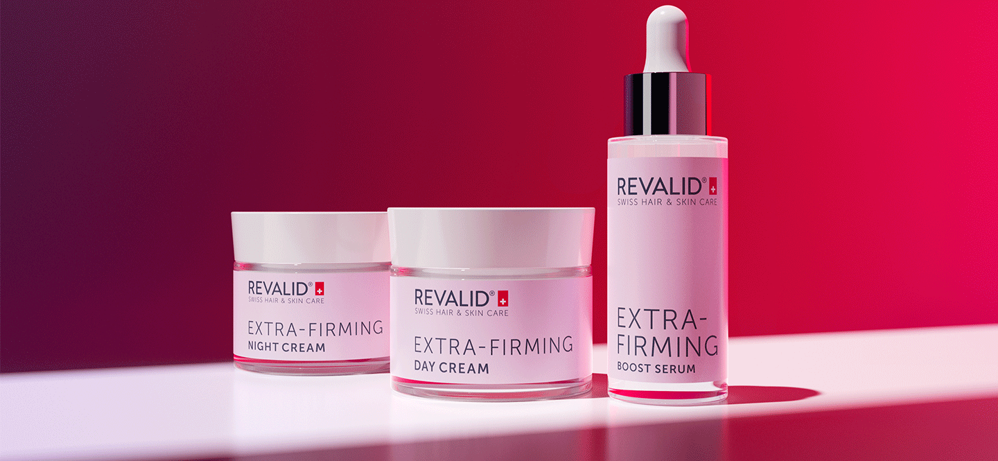 Wiele kobiet czuje się zmotywowanych do działania, gdy zauważają pierwsze drobne linie i zmarszczki – naturalny sygnał, że nadszedł czas, aby zadbać o swoją skórę. W Revalid rozumiemy ten problem i stworzyliśmy linię kosmetyków Extra-Firming Skin Care jako idealne rozwiązanie. Połączyliśmy innowacyjną szwajcarską biotechnologię z peptydami roślinnymi i silnymi antyoksydantami. Nasze formuły o spowolnionym starzeniu redukują zmarszczki, liftingują i głęboko nawilżają skórę.